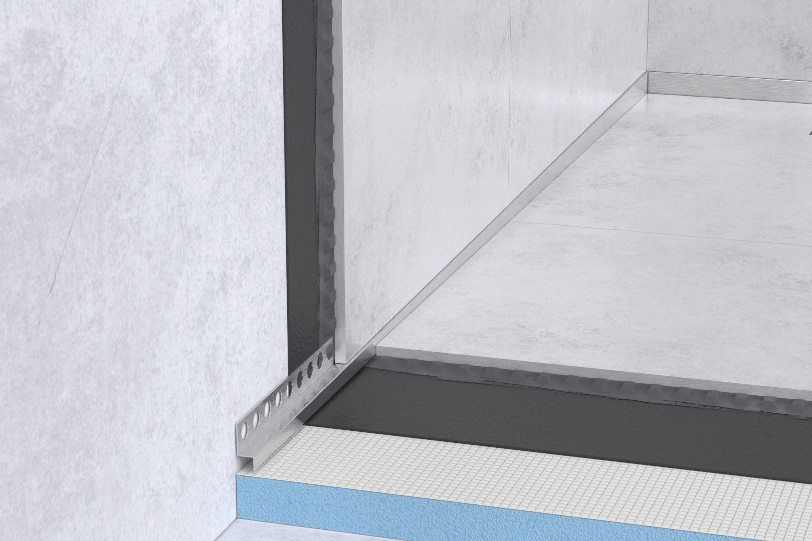 Le profilé incliné définit une inclinaison de 2%. L’inclinaison restera intact lors de découpage du profilé pour chaque mesure donnée – cela permet d’obtenir un produit adapté et personnalisable qui répond au besoin de chacun. La partie frontale du profilé présentée s’élargit vers la bonde, la base reste inchangée – grâce à cela il ne faut plus découper les carreaux.